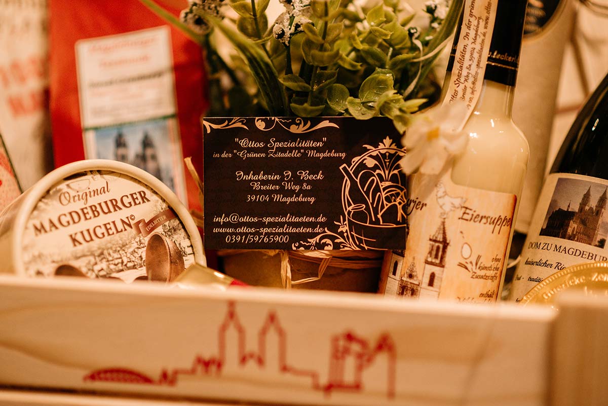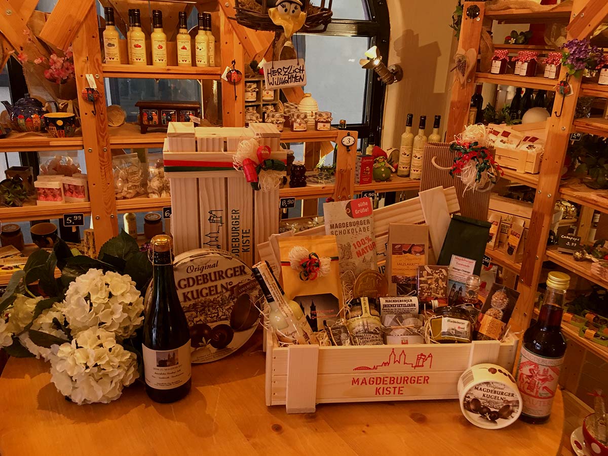 Bei uns könnt ihr euch liebevoll und individuell bestückte Geschenkekisten zusammenstellen.